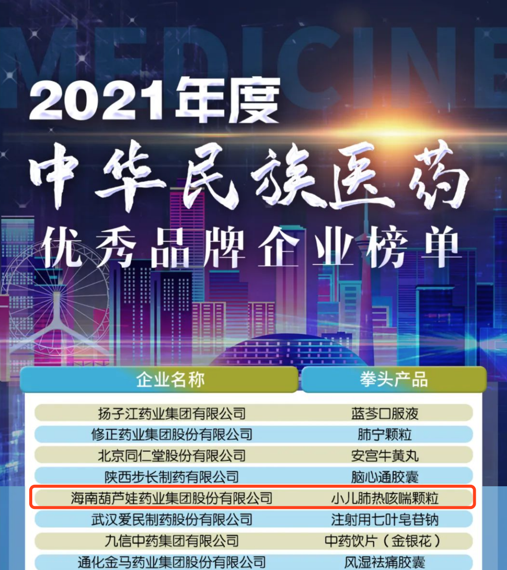 12月29日,全国工商联医药业商会发布了“2021年度中华民族医药优秀品牌企业榜单”,365英国上市公司药业集团凭借黄金单品小儿肺热咳喘颗粒(4克)实力登榜。